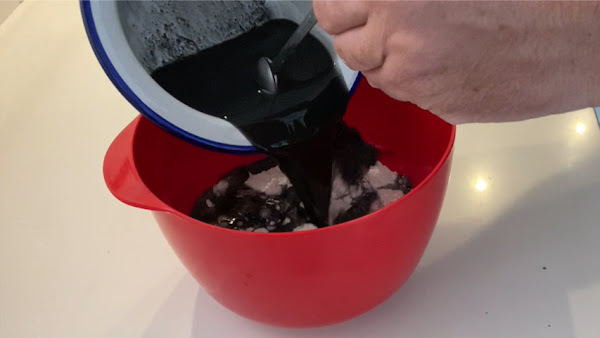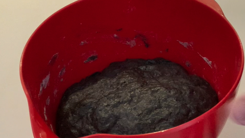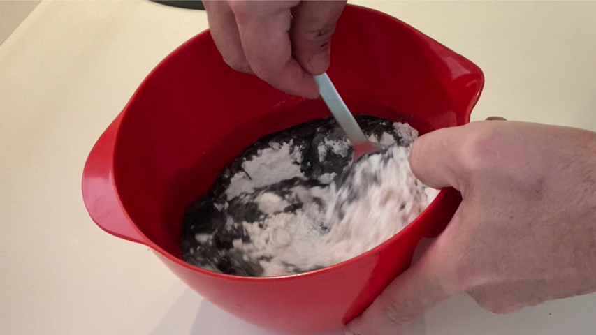 Mezcla la harina con el agua teñida hasta hacer una mezcla uniforme.