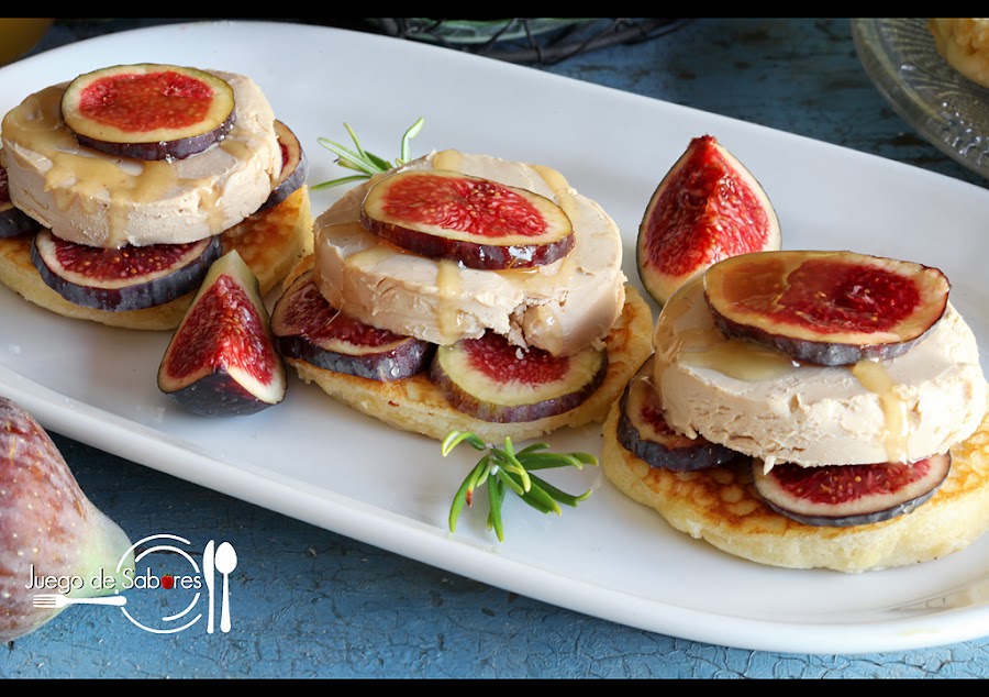 Para servir poner encima de cada blini unas rodajas de higo, foie en un trozo o en virutas (como más os guste) y un poco de miel. La combinación de higos con queso azul y miel es algo que también queda muy bien sobre un blini.