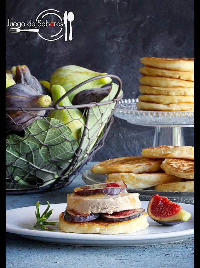 El blini es el equivalente ruso al crêpe francés o al pancake inglés. Se hace a base de harina, huevo, leche y levadura. El resultado es una pasta espesa que pondremos a cucharadas sobre una sartén untada con mantequilla y que doraremos por ambos lados. Por su forma redonda y su color dorado antiguamente se asociaban los blinis al Sol y era uno de los platos principales de la “Maslenitsa”, una fiesta pagana que se celebra a finales de invierno, equivalente a nuestro Carnaval. Pero ahora los blinis se consumen cualquier día del año y en Rusia hay empresas de “fast food” que los venden acompañados de toda una variedad de rellenos. Los clásicos rusos son los blinis que llevan crême fraîche” (leche agria), o bien carne picada o pollo, o pescado salado y ahumado, también por supuesto caviar. Los amantes del dulce pueden optar por las mermeladas. Nosotras hemos intentado occidentalizar nuestros blinis y los hemos acompañado de higos frescos y foie, así como un chorrito de miel.