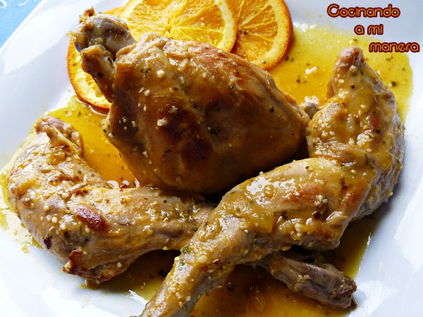 si quieres acompañar el conejo con unas rodajas de naranja, añádelas a la cazuela unos minutos antes de terminar la cocción.