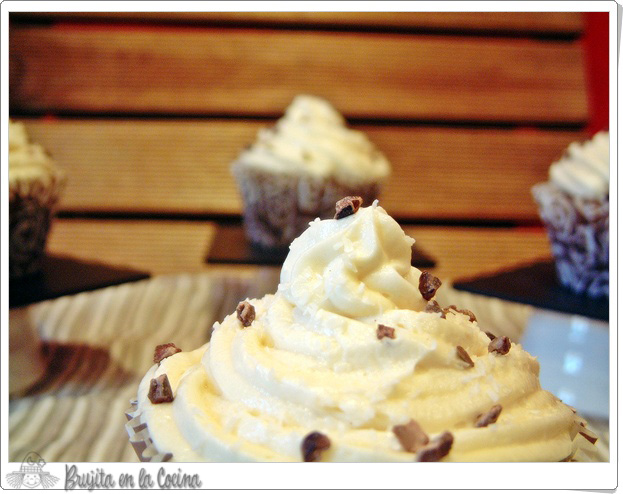 Introducimos la crema en manga y decoramos los cupcakes ya frios.