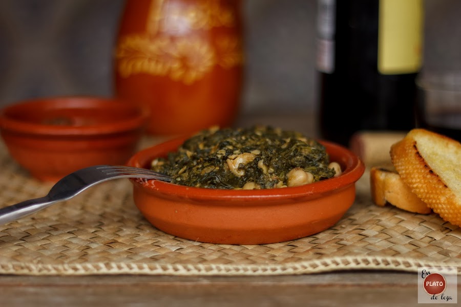 Hoy tocaba en casa otro de esos platos de toda la vida, de los que has visto en casa de tus padres y se han transmitido durante generaciones. Un plato típico andaluz de cuchareo pero también una tapa estrella de muchos bares típicos, de Sevilla sobre todo. Al menos que yo conozca... ¿En vuestras ciudades también las ponen en los bares? En Huelva no las he visto tanto, sin embargo en Sevilla es muy típico la platea de barro con las espinacas con garbanzos. De hecho, si estás de por el centro, aprovecha y visita El Rinconcillo, en la plaza de los Terceros, una bar-taberna centenario con mucho encanto, donde las ponen exquisitas. Y ya que estás, si hace calor que no es difícil, das la vuelta al edificio y pides una cerveza en El Tremendo, fresquita, fresquita, es uno de los lugares donde mejor la tiran.