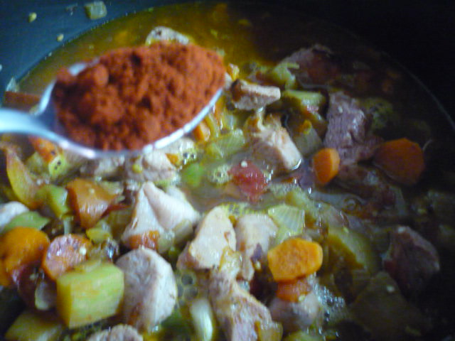 5.- Sumamos la cerveza, el pimentón de la vera, los granos de pimienta un poco de sal y cubrimos con agua.