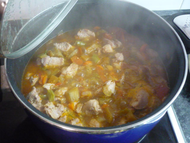 6.- Dejamos cociendo a fuego lento durante unos 40 minutos aproximadamente, removiendo de vez en cuando.