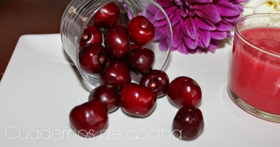 De cerezas va la cosa hoy. Pero no dulce, sino como base de un gazpacho colorido y nutritivo. Y es que la cereza es una fruta que aporta muchas vitaminas y pocas calorías, por lo que es la fruta ideal para no perder la linea. Bien fresquitas son buenas aliadas en días de calor. ¿Quién no ha empezado por un puñadito y cuando se ha querido dar cuenta tiene el plato lleno de pipos y se ve incapaz de parar? Pues sí, también son adictivas!!!!