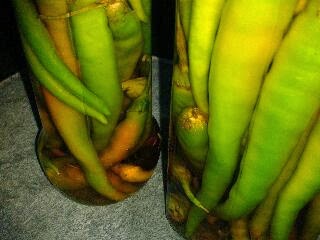 Las metemos una a una en botes esterilizados, que queden juntas pero sin romperlas. Rellenamos el bote con el vinagre que nos guste, dejando dos centímetros vacíos y le añadimos sal. Cerramos los botes y movemos.