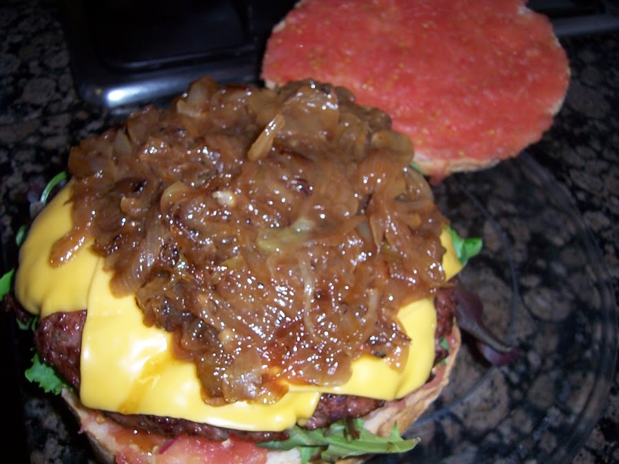 Montamos la hamburguesa, ponemos la lechuga, la hamburguesa con el queso y encima la cebolla caramelizada tapamos y listo para servir. Buen provecho.
