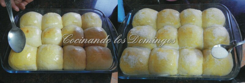 sacamos, volvemos a pintar con huevo o mantequilla derretida y rociamos azúcar por encima
