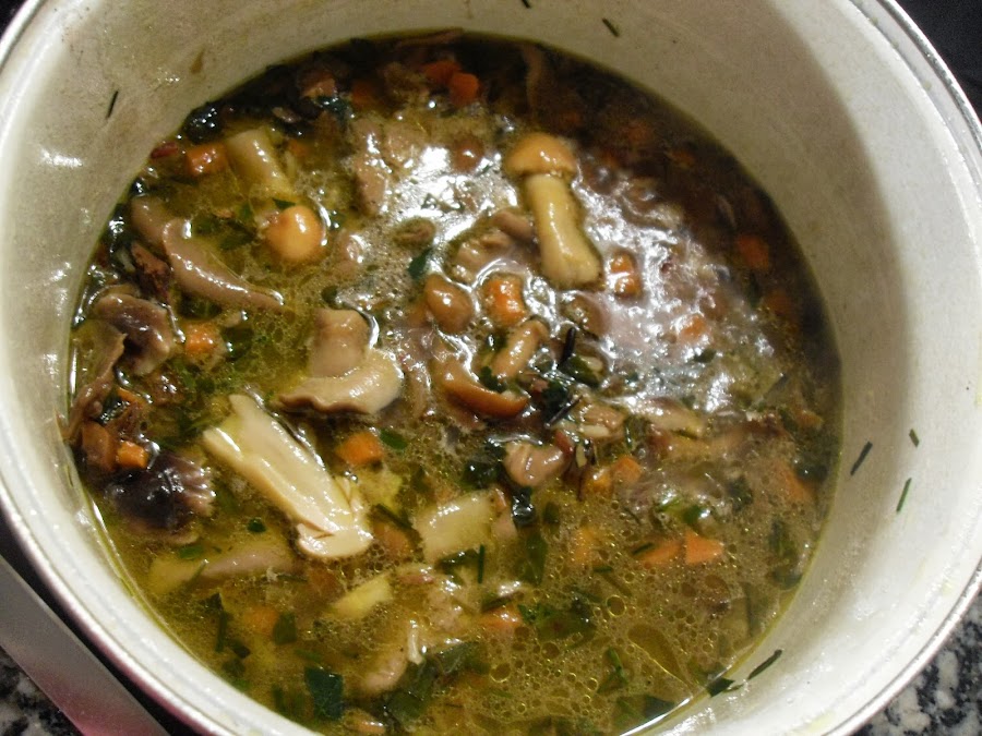 Cuando el arroz este cocido y quede más bien seco pero cremoso, agregar el sofrito de verduras las setas y volver a saltear todo con 1 cucharadita de mantequilla para hacerlo más cremoso.