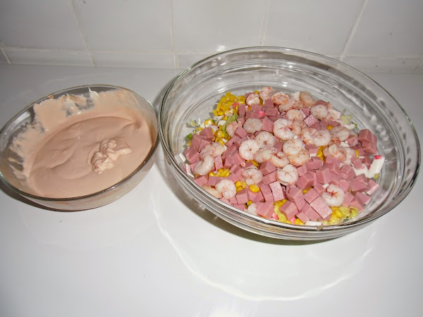 En otro recipiente echamos 3 ó 4 cucharadas colmadas de mahonesa