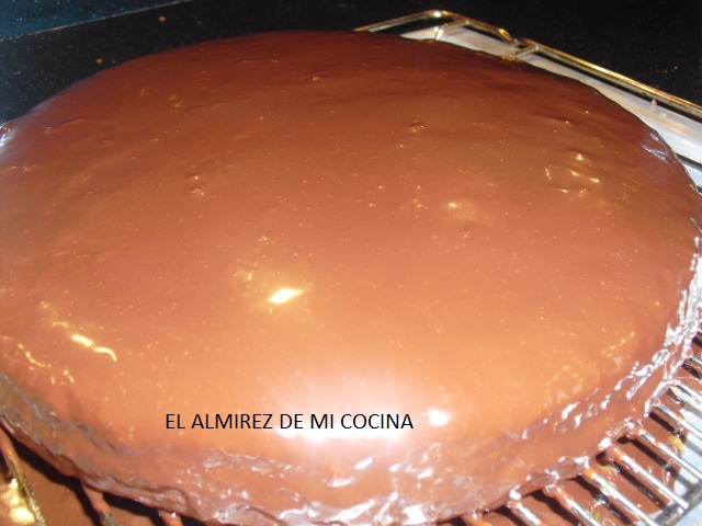 Cubrimos la tarta con este glaseado y la ponemos en la nevera más o menos una hora