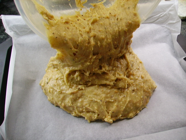 6.- Amasamos todo bien y cuando esté consistente poner en una bandeja y extender con una pala.