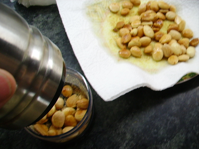 5.- Trituramos las almendras, resevando alguna entera si queremos y las agregamos al bol.