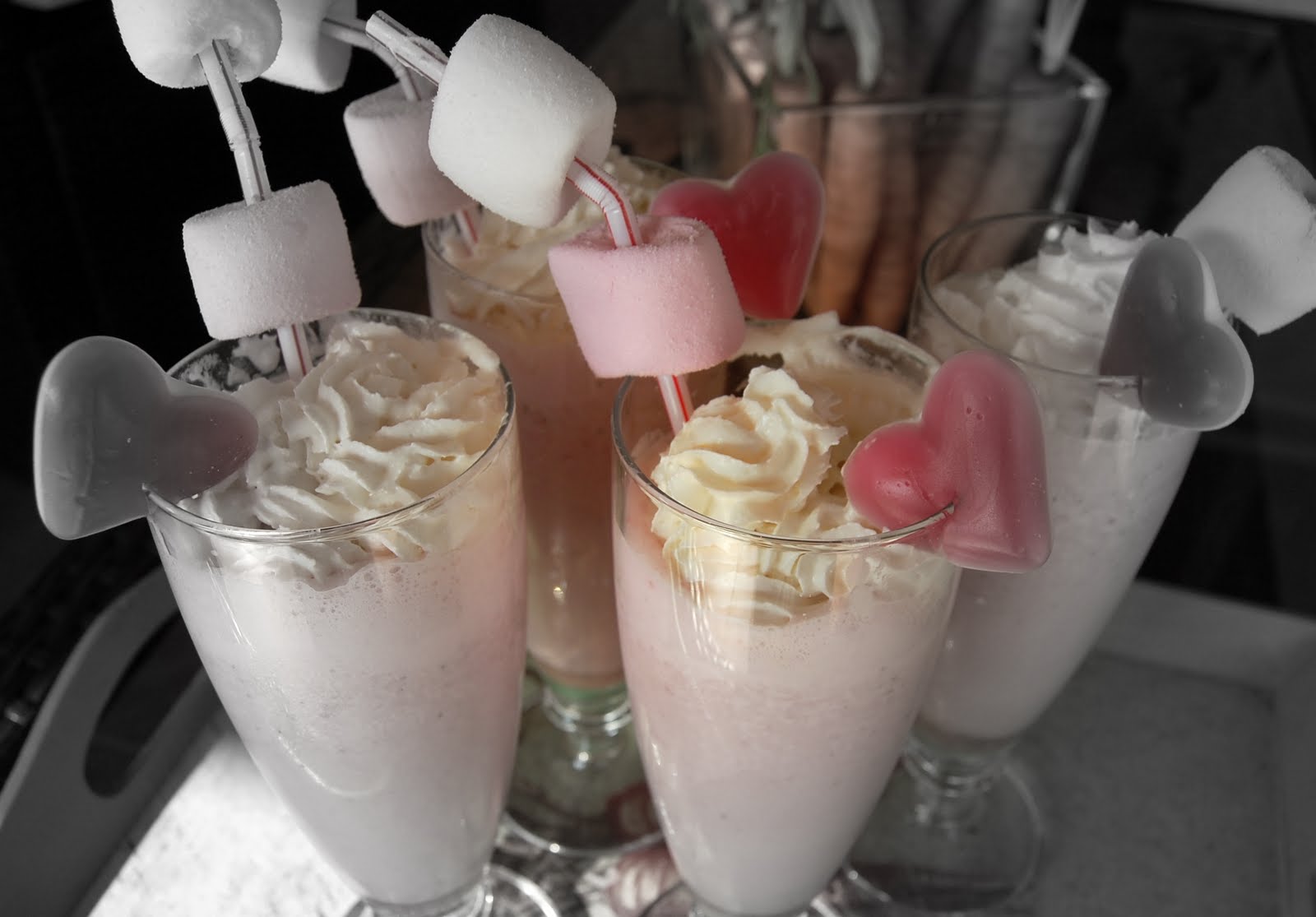 Llenamos la copa con el batido, añadimos un poco de nata (crema de leche) en spray y decoramos con las golosinas.