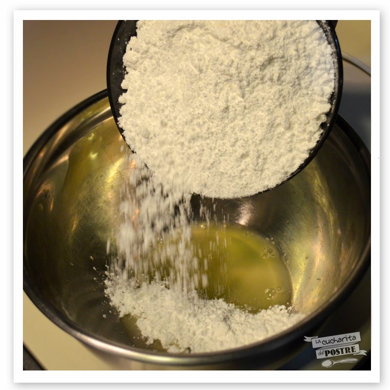 3. Ve incorporando poco a poco el azúcar glasé. Es mejor no ponerlo todo de una vez para que no se haga una glasa dura como una piedra.