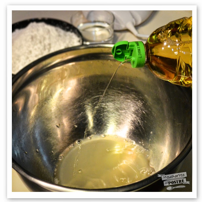 1. Vierte en un bol unas 2 claras pasteurizadas aproximadamente (1 clara son 4 cucharadas soperas). Las venden en botellas en la sección de refrigerados de cualquier supermercado.