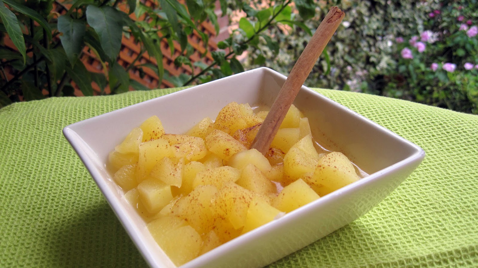 Le quitamos la presión y le ponemos encima de las manzana un trozo de papel para horno con el mismo diámetro que la cubeta, dejamos enfriar bien tapado con el papel, así no se oxidara mientras se enfría y cuando haya enfriado ya lo tenemos listo para comer. le ponemos un poco de canela molida por encima...........