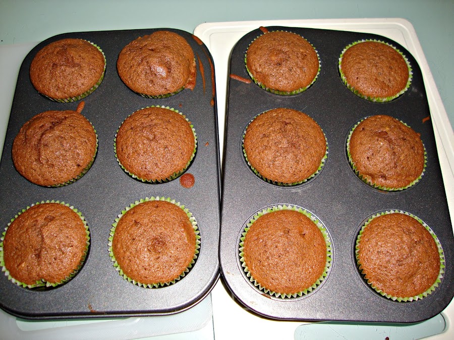 Luego se reparte la masa en las cápsulas de las magdalenas y se mete en el horno caliente a 175º C durante unos 25 minutos.