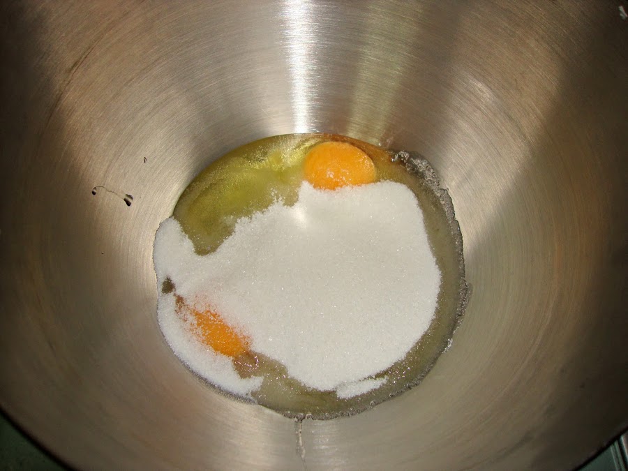 En un bol se ponen los huevos con la sal y el azúcar y se mezclan hasta que estén espumosos.