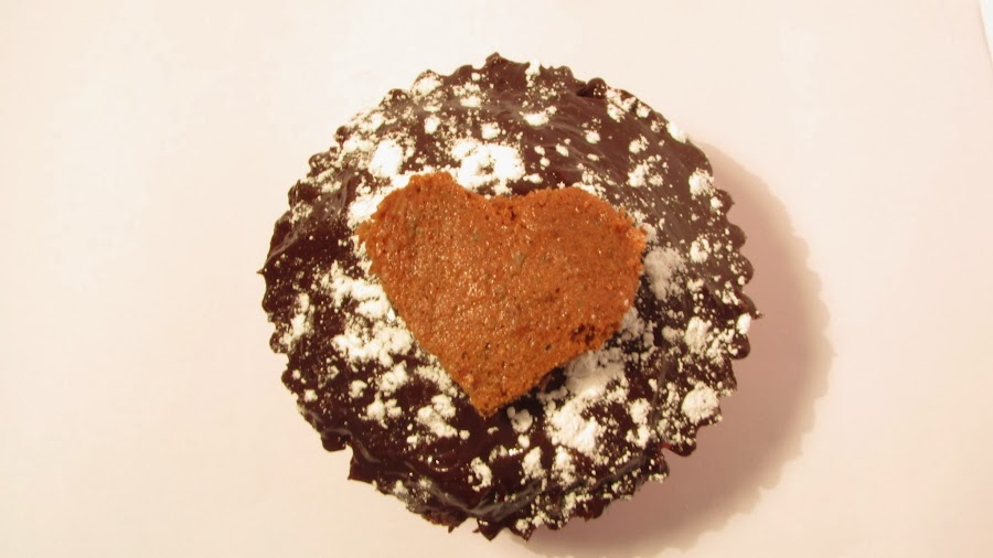 La base es de chocolate con trocitos de chocolate y la cobertura de chocolate negro fundido con un poco de nata (crema de leche). El resultado= los mejores cupcakes que he probado nunca..jeje ( cuanta modestia eh?)