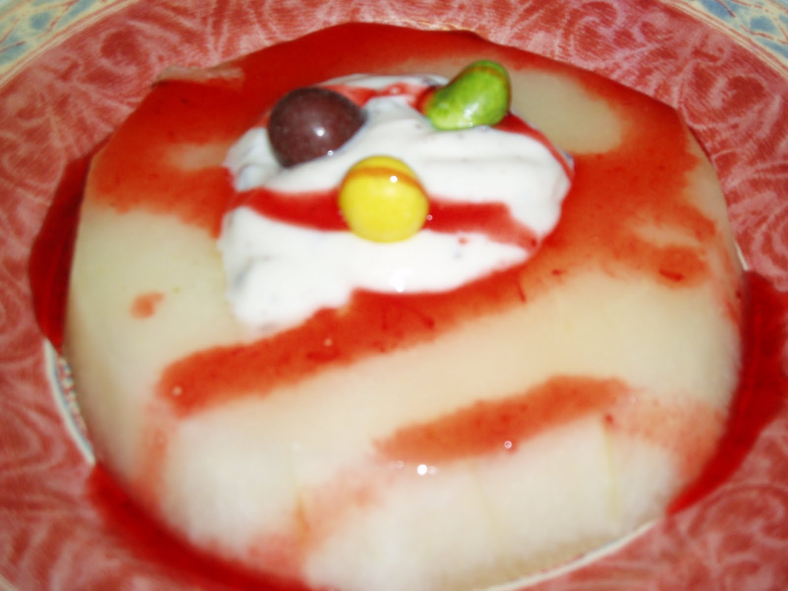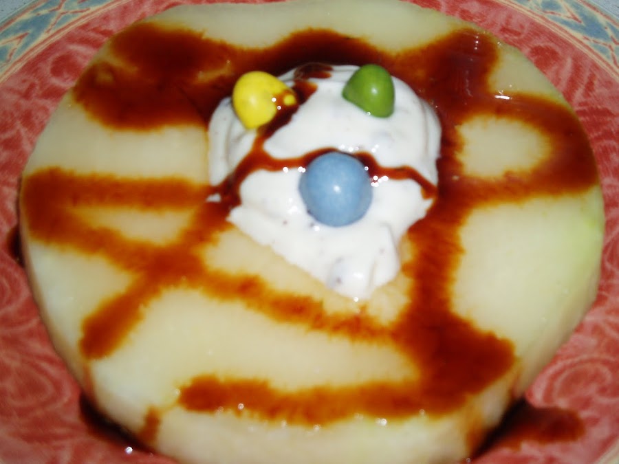 Bueno, pues esto se lo merendaron el otro dia mis hijos, no tiene receta ya qu etodo es producto de la decoracion y del corte del melon.
