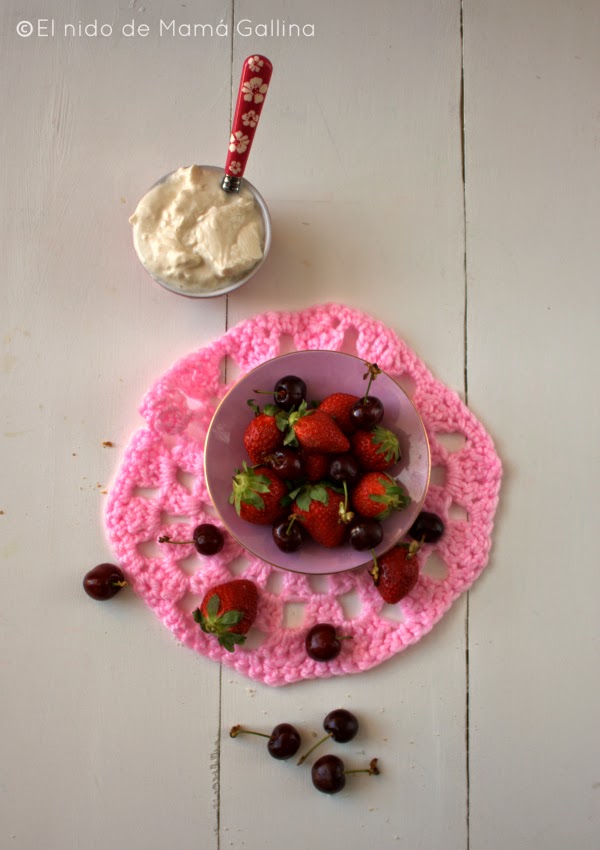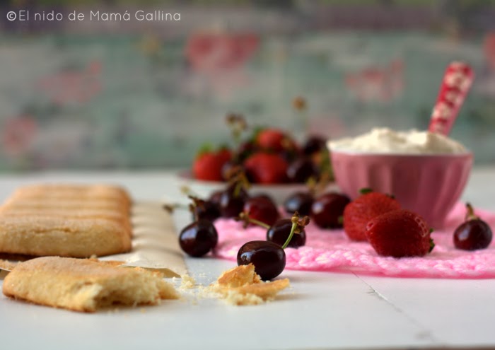 Yo he usado bizcochos de soletilla, fresas, cerezas y yogurt de soja con azúcar moreno.