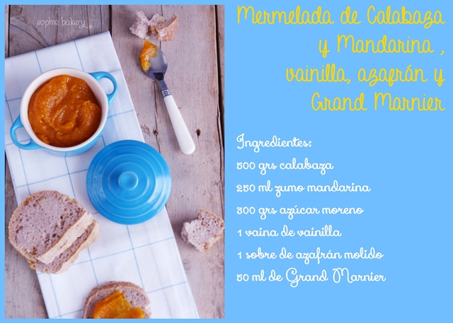 Pelamos y troceamos la calabaza. La ponemos al fuego junto al zumo de mandarina y el azúcar..durante 30 minutos, a fuego lento. Ahora la calabaza habrá empezado a ablandarse...añadimos la vainilla, el azafrán y el Grand Marnier. Siempre a fuego lento y removiendo abundantemente para evitar que se pegue durante 40-50 minutos mas. En este momento retiramos la vainilla y trituramos y dejamos cocer 5 minutos mas para que coja textura.