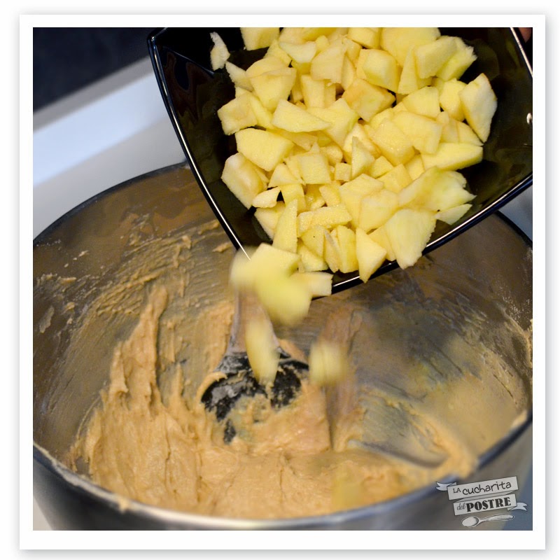 9. Repite los pasos 7 y 8 hasta tenerlo todo mezclado. Añade ahora la manzana cortada en trocitos.