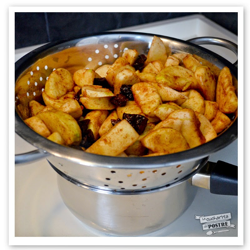 3. Mientras tanto, escurre el jugo que han soltado las manzanas, pero no lo tires porque va a ser la clave del relleno.