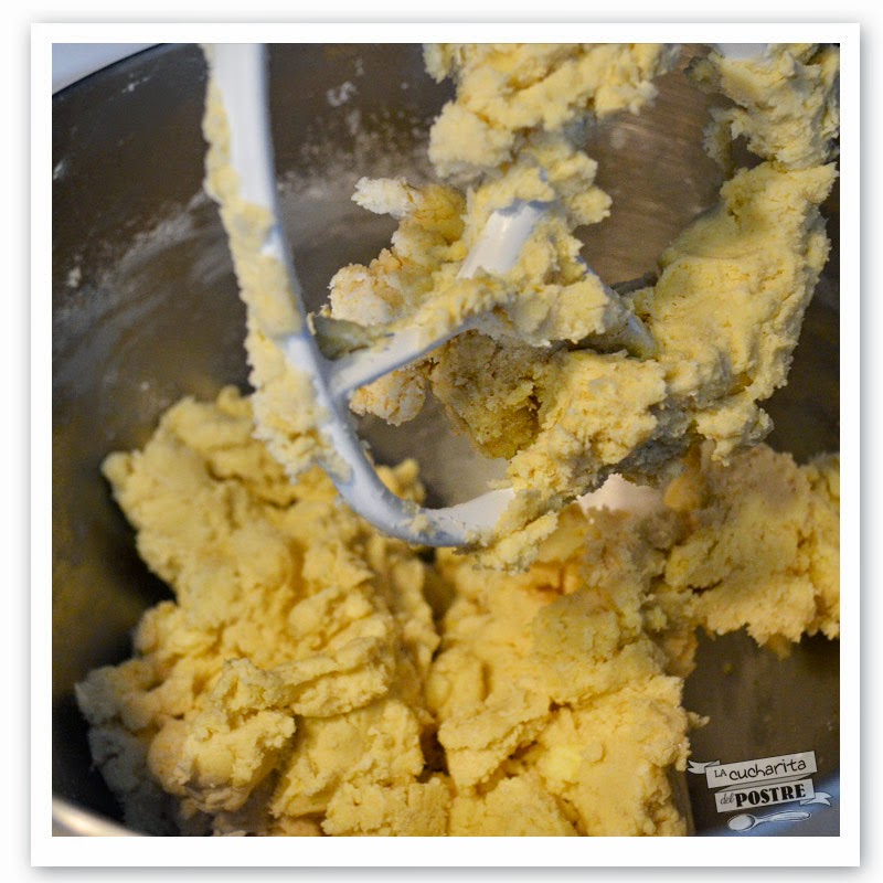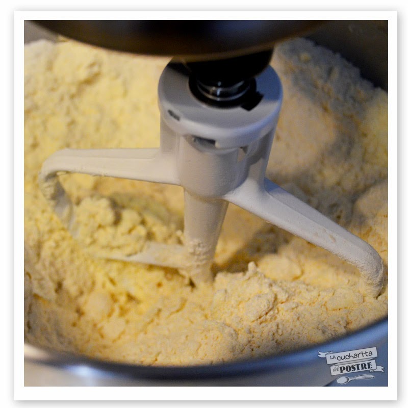 5. Bate hasta conseguir una especie de harina gruesa sin trozos grandes de mantequilla.