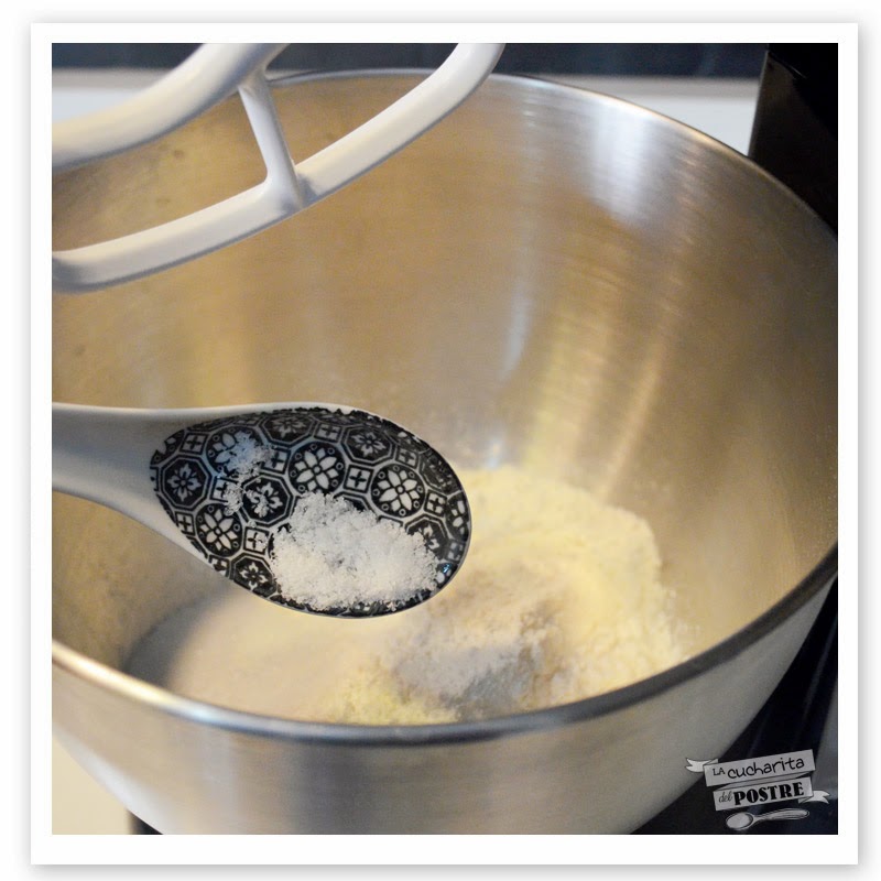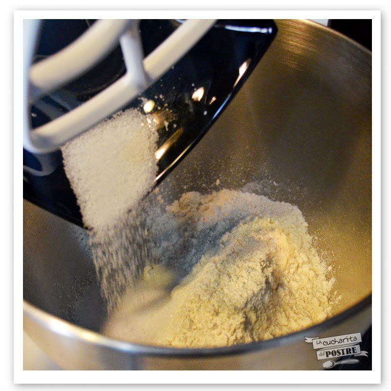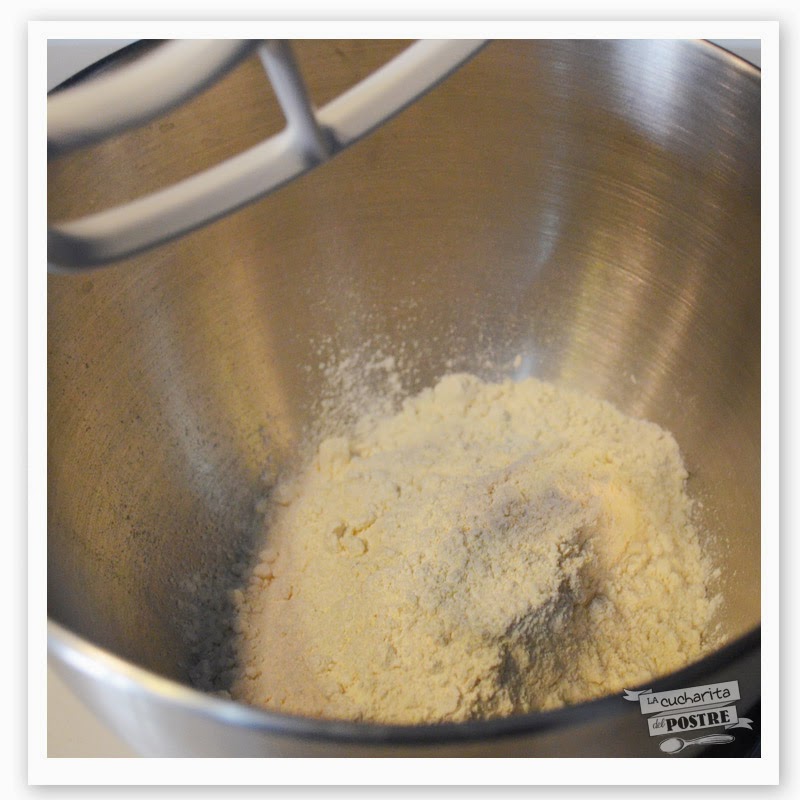 1. Pon la harina en el bol de tu amasadora. Si no tienes, también lo puedes hacer a mano, aunque tendrás que trabajar un poquito más.