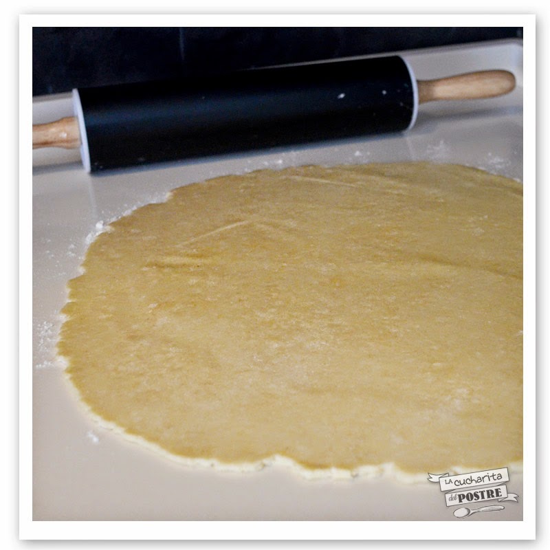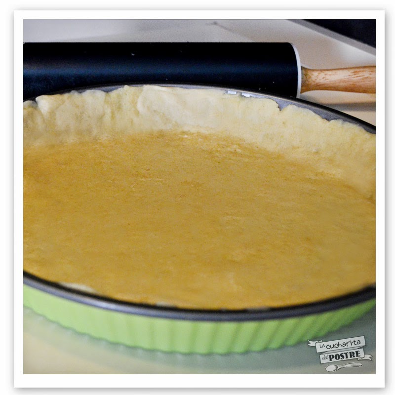 2. Forra la base del molde con la masa con cuidado de que no se rompa. Si eliges un molde tradicional con el borde rizado, presiona bien por todas las hendiduras para que encaje perfectamente toda la masa.
