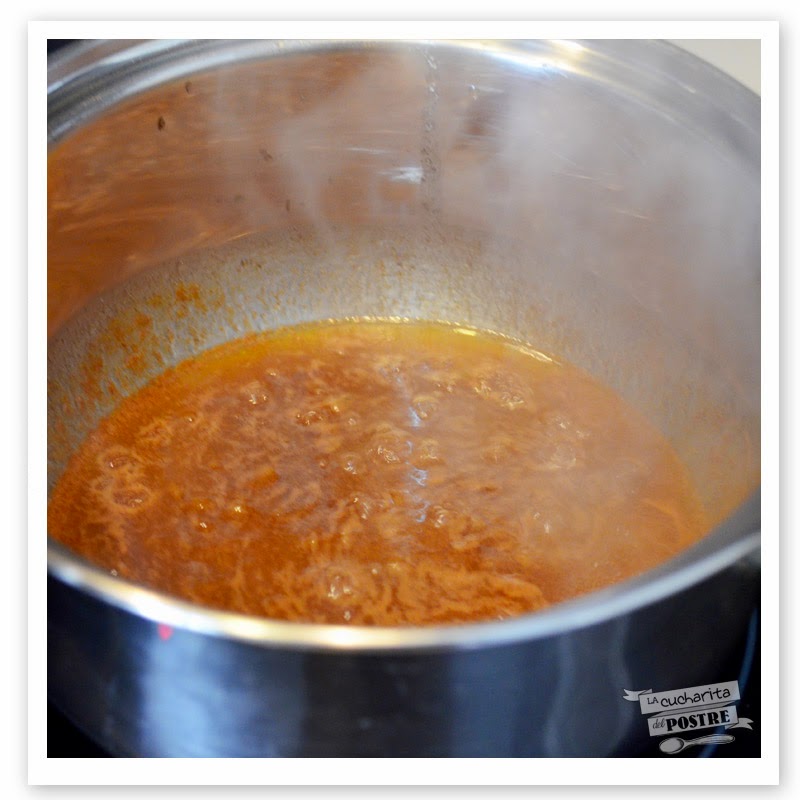 5. Déjalo reducir a fuego medio durante unos 15 minutos, removiendo de vez en cuando para que no se pegue. Cuando quede como una especie de sirope, algo más denso, retíralo del fuego.