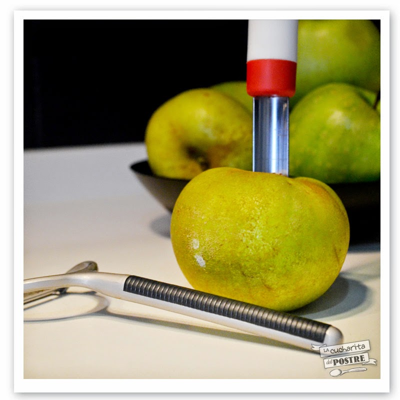 1. Pela y descorazona todas las manzanas. Con un pelador lo harás en un periquete, aunque si eres más de pelar con la puntilla... ¡adelante! Si las manzanas se oxidan un poco, no pasa nada. Esto no influye en el resultado final de la receta porque van escondidas dentro de la masa.