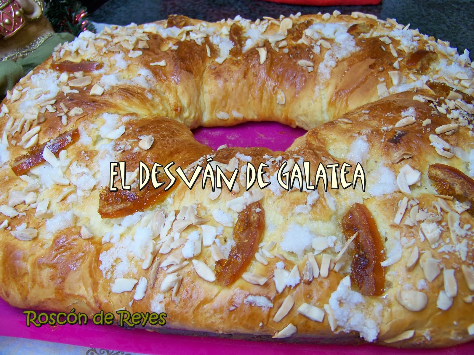 Poner en una bandeja de horno forrada con papel vegetal, pintar con huevo batido y adornar con azúcar humedecido con agua de azahar, almendra laminada, fruta escarchada, o lo que más nos guste.