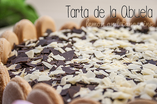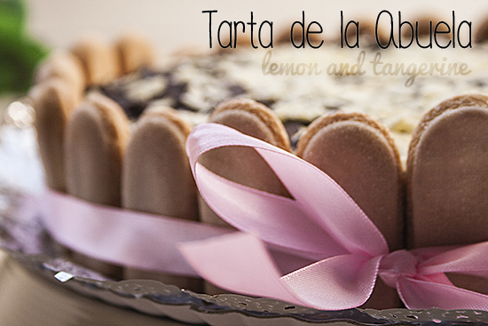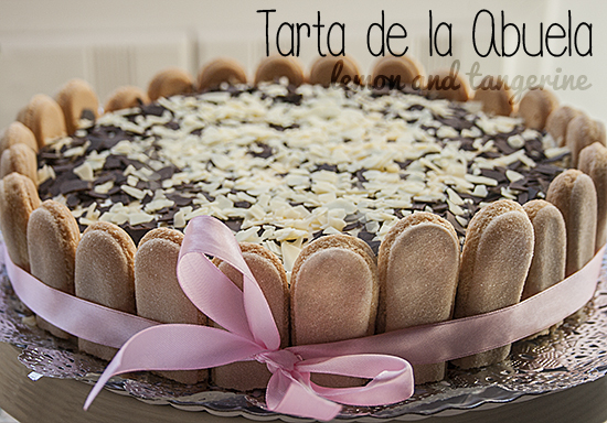 Yo lo decoré como veis en las fotos, con unos bizcochitos cortados a la mitad, rodeando la tarta, y sujetando todo con un lacito. Por encima puse un poco de escarcha de chocolate sobre el flan, porque se me había terminado el chocolate y no tenía más. Podéis pasar de esto y poner un poco de chocolate brillante: fundís chocolate con nata (crema de leche) para montar y mantequilla, como una ganache, esperáis a que enfríe y lo extendéis por encima.