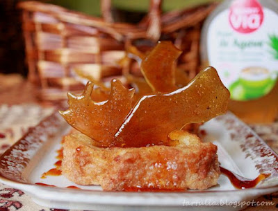 Torrijas con caramelo Calentamos el Sirope de Agave Sunny Vía, removemos sin parar a fuego fuerte hasta que notamos que espesa un poco, sacamos del fuego y rociamos las torrijas.