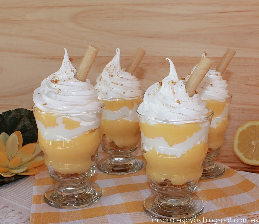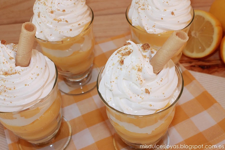 Incluso si no sois muy amantes del limón, lo podéis sustituir por naranja (zumo y ralladura de naranja), y de esta forma se consiguen unos deliciosos vasitos de merengue y Orang Curd (crema de naranja).