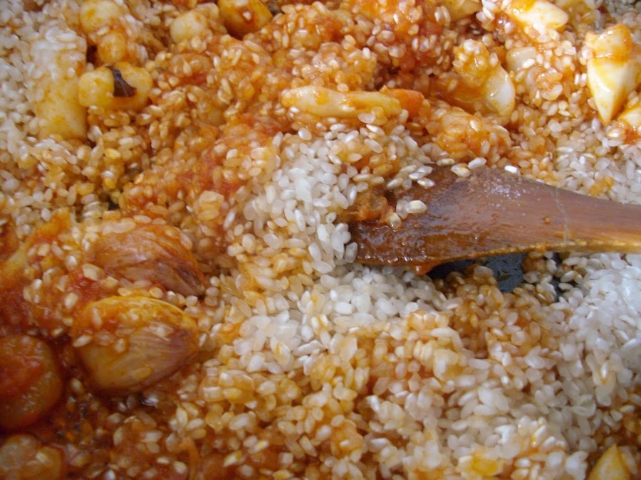 .y acontinuacion...echamos el caldo...y las bolsitas de tinta.....rectificamos de sal...