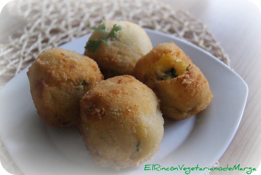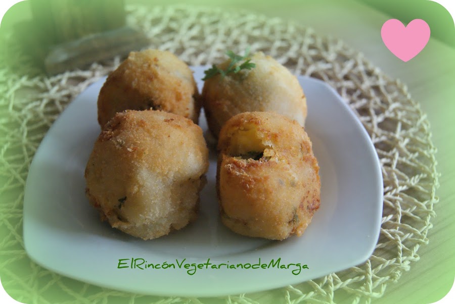 Tenía gula de algún alimento frito y decidí hacer estas bolitas. Cuando el puré de patata solidifica se pueden rellenar de todo lo que queráis y son geniales. Se me ocurrió la receta al ver en un restaurante mejicano unas bolas de puré de patata rellenas de carne picada y rebozadas, así que me pusé manos a la obra y este es el resultado.