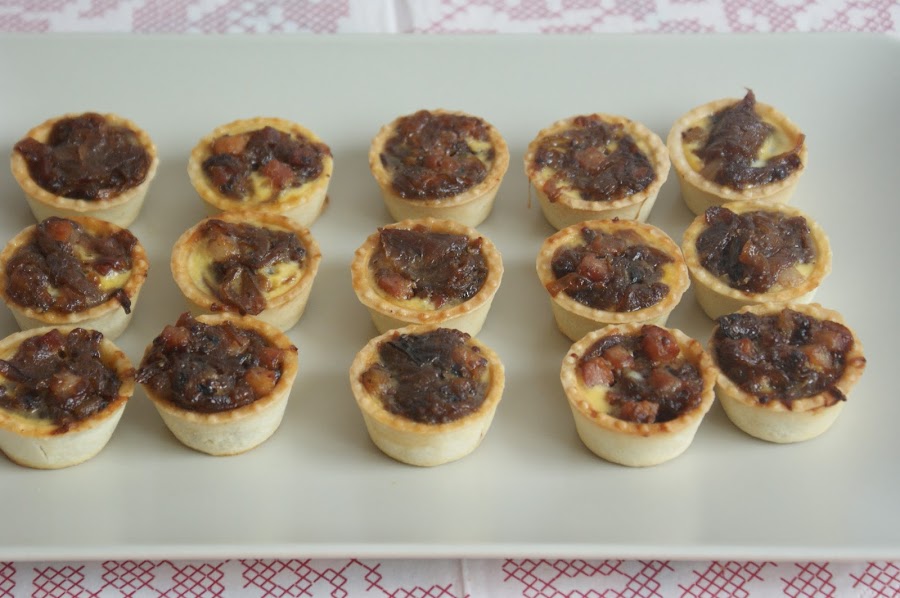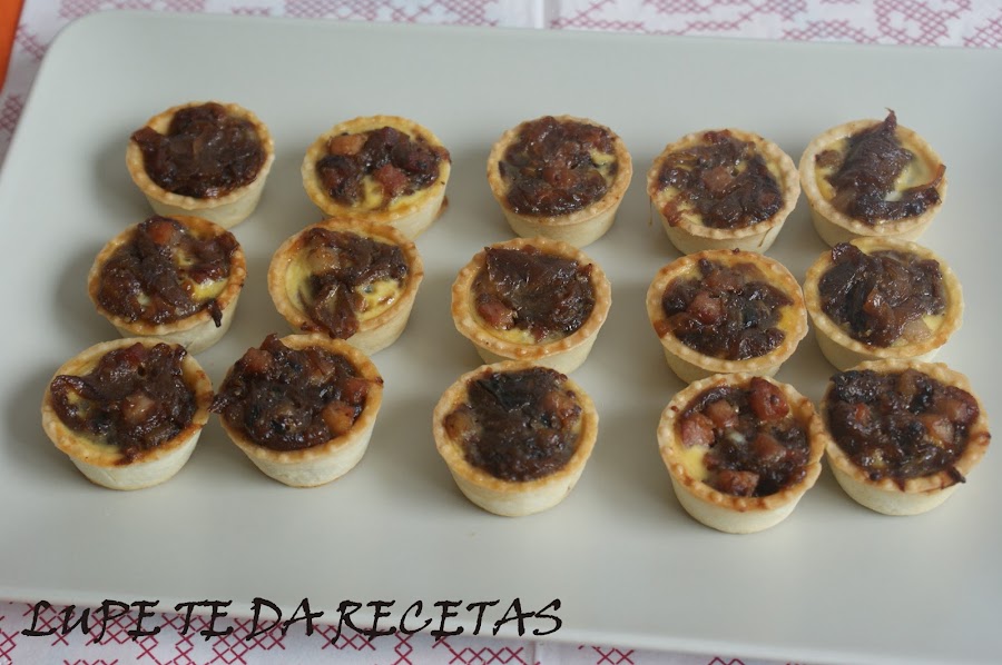 Mezclar la cebolla con el bacón y rellenar las tartaletas con la mezcla.