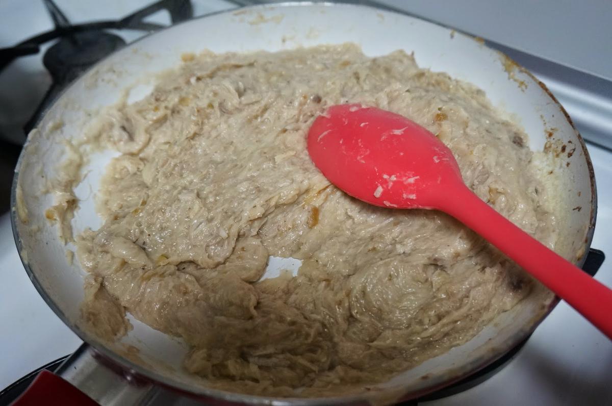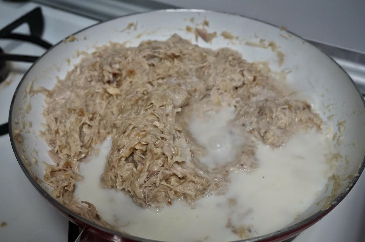 Luego seguiremos con la leche, la cantidad es aproximada, seguiremos echando hasta que la masa se vaya despegando .