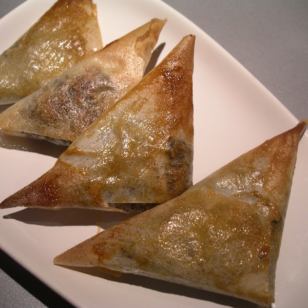 La pasta brick se seca con facilidad, por lo que recomiendo que no la saquéis hasta el momento de hacer los paquetes, que en este caso sera en forma de triangulo.