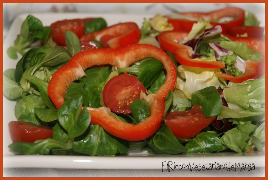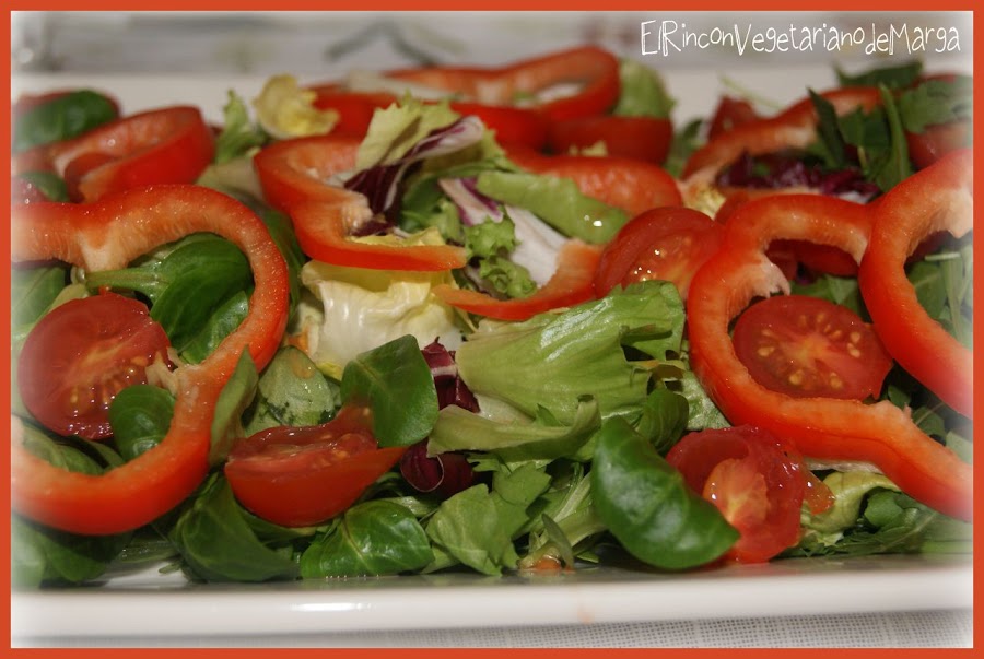 La receta de hoy no puede ser más fácil y rápida, pero a mi me gusta mucho, especialmente el pimiento rojo crudo. Hay a quien el pimiento rojo le resulta indigesto, en este caso no ponerlo en la ensalada.