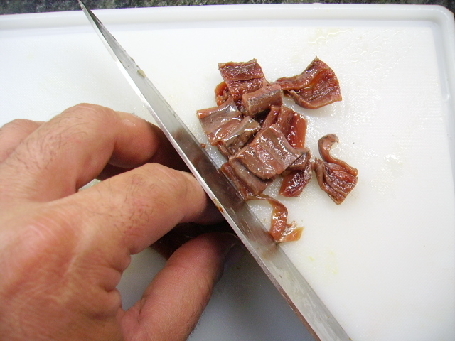 6.- También troceamos las anchoas y junto con el atún completamos nuestra ensalada.