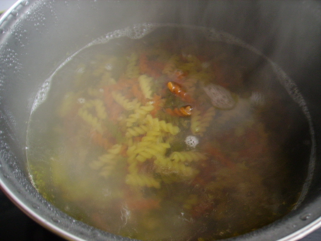 1.- Cocer la pasta en agua hirviendo con un poco de aceite de oliva, sal y oréganos, siguiendo los tiempos del fabricante.
