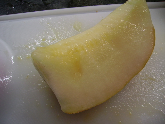 3.- Cortamos el melón de dados y los añadimos en el centro de la ensalada dejando hueco para la salsa.