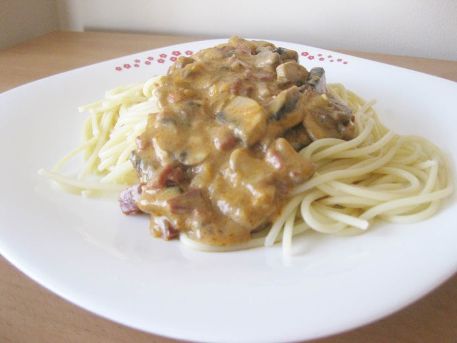 Solo nos queda escurrir bien la pasta , ponerla en un plato y echar esta deliciosa salsa por encima .
