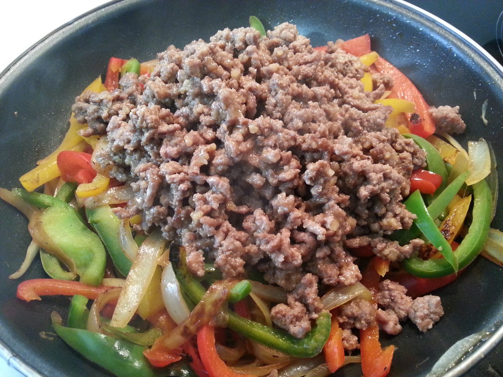 5. - Removemos , y mezclamos las verduras con la ternera, y ya tenemos el relleno.