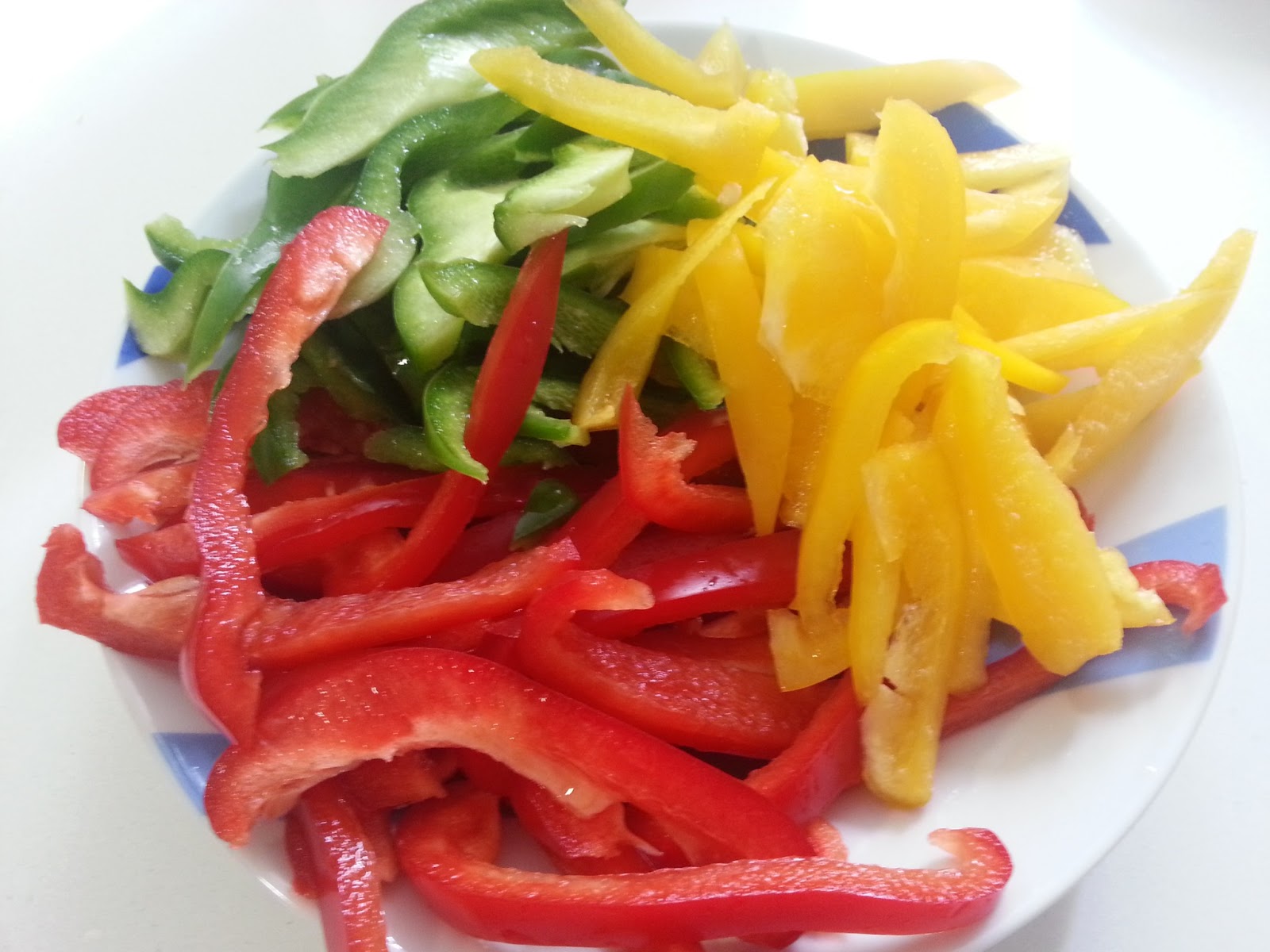3. - Cortamos en tiras los pimientos.